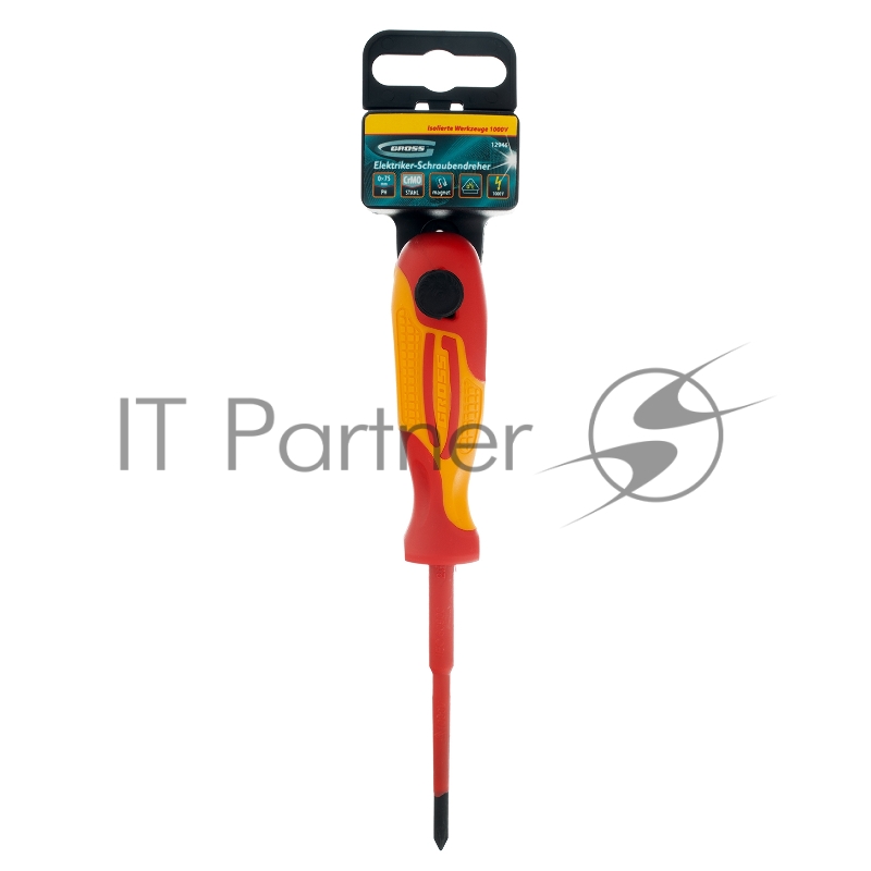Отвертка диэлектрическая PH0х75 мм, CrMo, до 1000 В, двухкомпонентная рукоятка// Gross