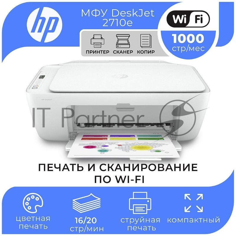МФУ струйный HP DeskJet 2710e (А4, принтер/сканер/копир, 1200dpi, 7.5чб/5.5цв ppm (ISO), WiFi, USB) (26K72B)