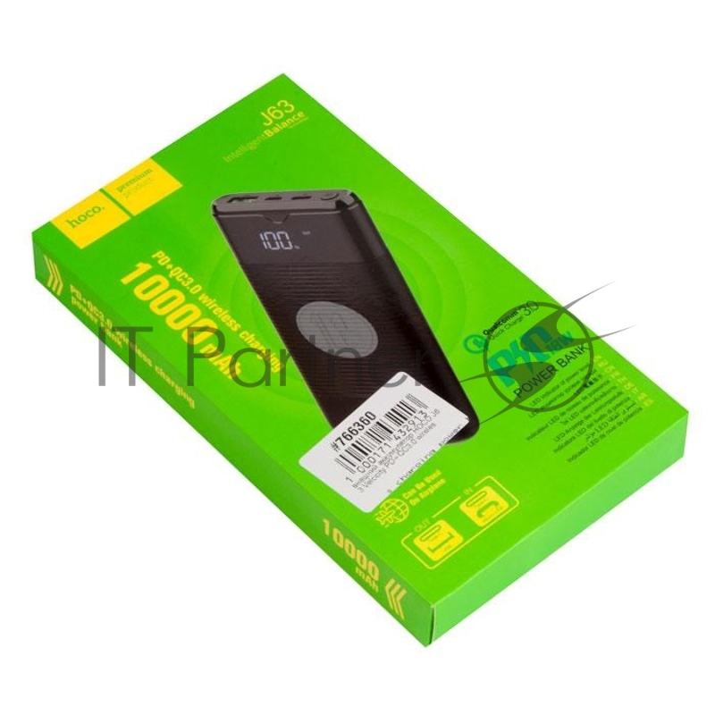 Внешний аккумулятор HOCO J63 Velocity PD+QC3.0 wireless charging power bank(10000mAh), черный