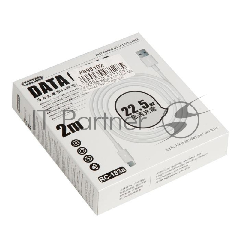 Кабель USB REMAX RC-183a Marlik Series Fast Charging для Type-C, 5.0А, длина 2.0м, белый