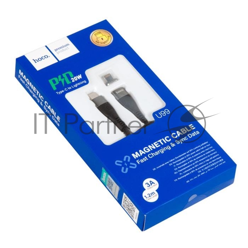 Кабель Type-C HOCO U99 Vortex magnetic для Lightning, PD20, 3.0A, длина 1.2м, черный