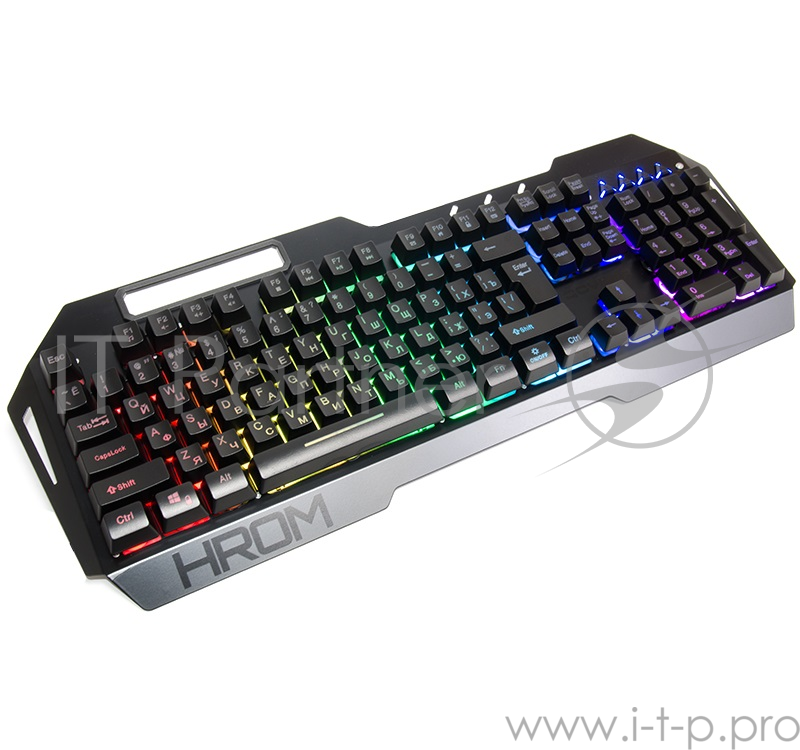 Клавиатура игровая QCYBER HROM мембранного типа. RGB подсветка, метал. корпус, подсветка двух шрифто