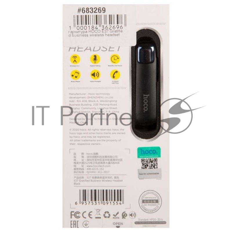 Гарнитура HOCO E37 Gratified business wireless headset, черный