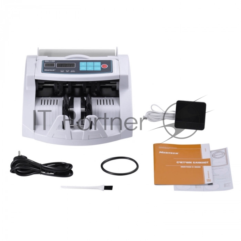 Счетчик банкнот MERTECH C-3000 WHITE, 1000 банкнот/мин, ИК, УФ детекция, фасовка, белый, 5517