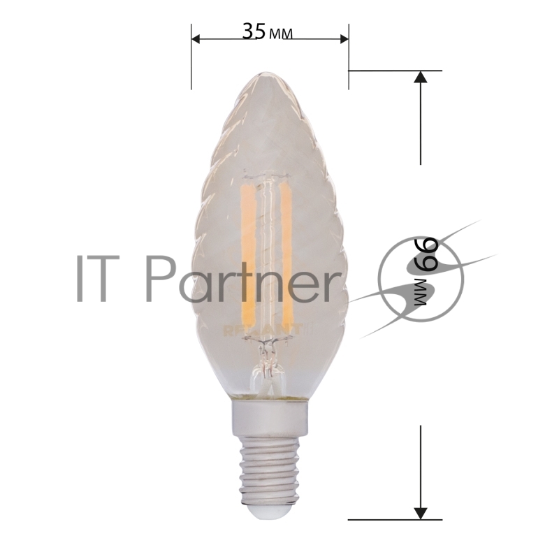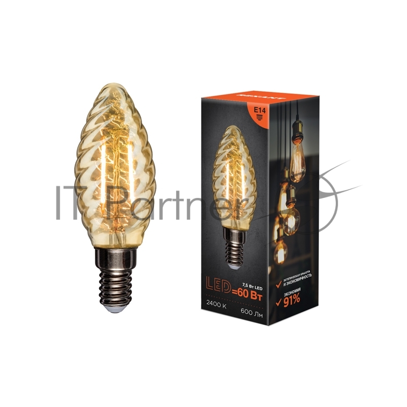 Лампа филаментная REXANT Витая свеча LCW35 7.5 Вт 600 Лм 2400K E14 золотистая колба