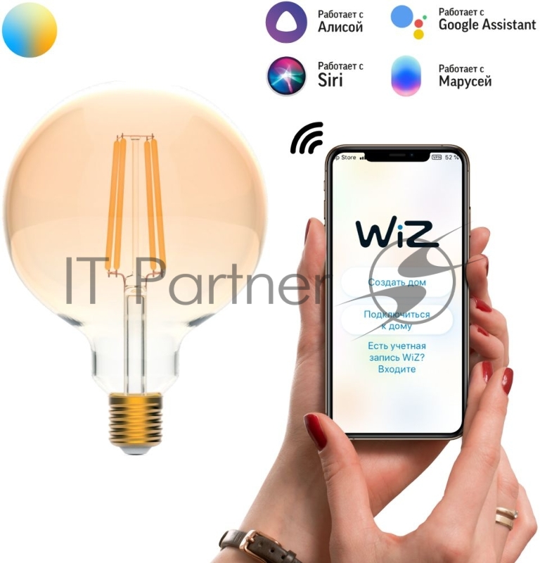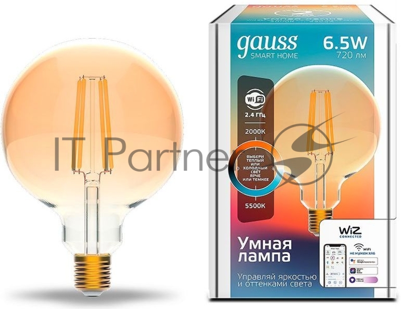 Лампа светодиодная филаментная Gauss Smart Home DIM+CCT E27 G95 Golden 6,5 Вт 2000-5500 К 1/40