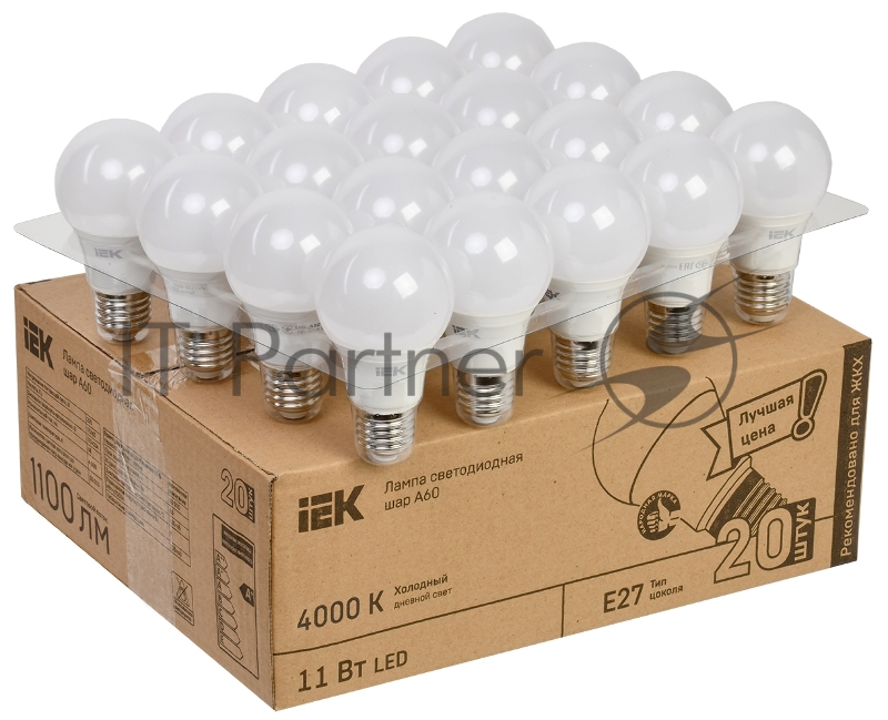 Лампа IEK LED A60 шар 11Вт 230В 4000К E27