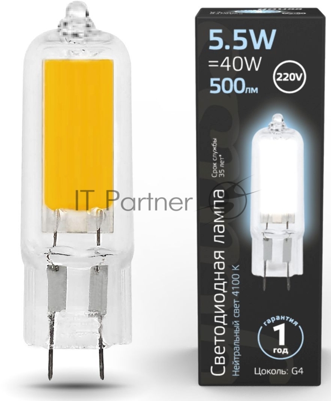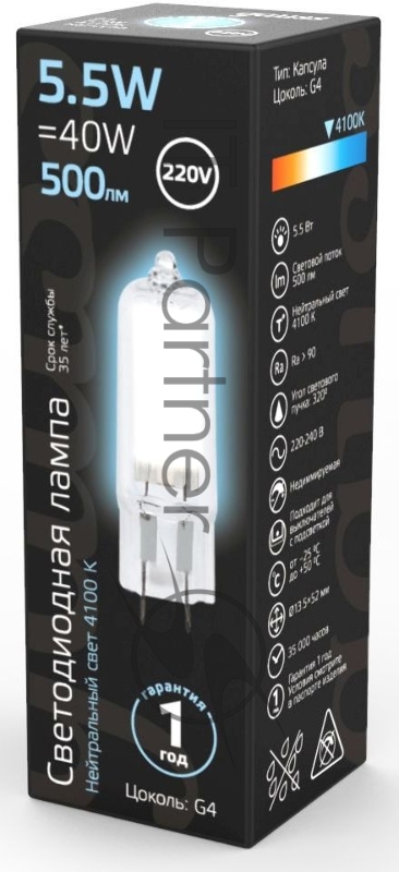 Лампа G4 AC220-240V 5.5W 500lm 4100K стекло LED