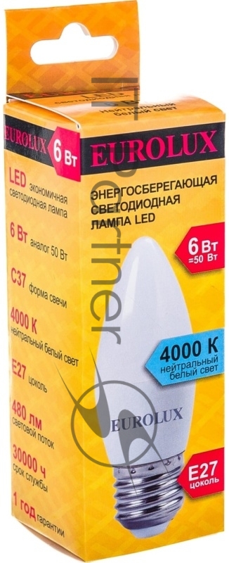Лампа светодиодная LL-E-C37-6W-230-4K-E27 (свеча