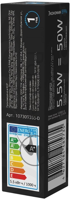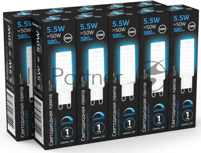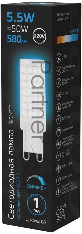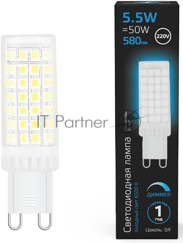 Лампа G9 AC185-265V 5,5W 580lm 6500K керамика диммируемая LED