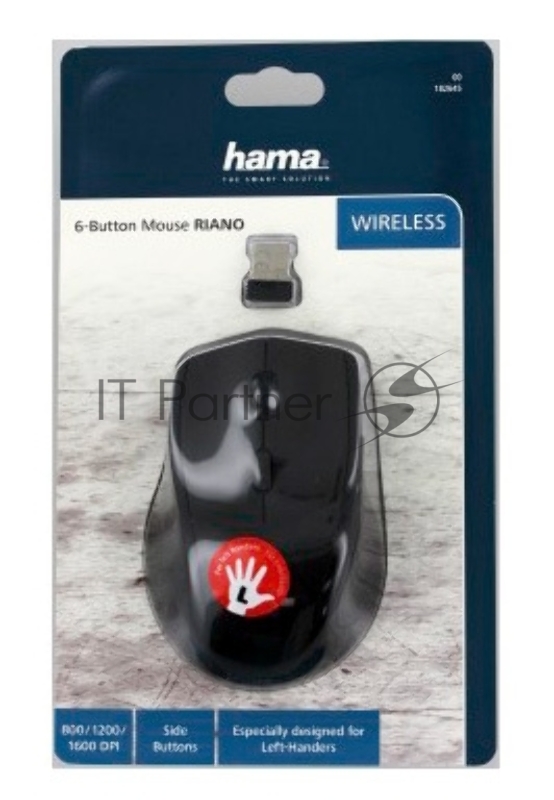 Мышь Hama Riano черный оптическая (1600dpi) беспроводная USB для ноутбука (5but)