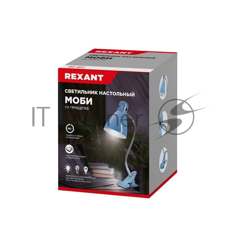 Светильник настольный Моби REXANT на металлической стойке с зажимом-прищепкой, с цоколем Е27, 60 Вт, цвет летнее небо