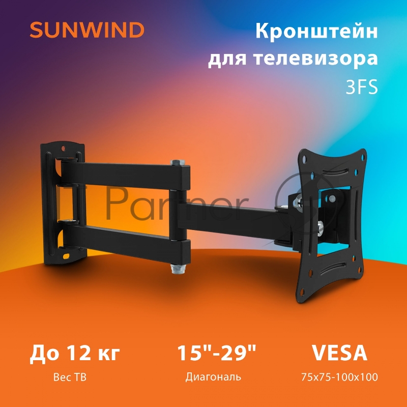 Кронштейн для телевизора SUNWIND 3FS, 15-29, настенный, поворотно-выдвижной и наклонный, черный [sun-ma71f313]