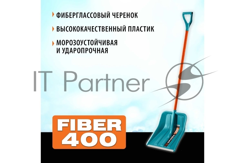 Снеговая лопата GRINDA PROLine FIBER-400 400 мм пластиковая с алюминиевой планкой, особопрочный легкий черенок из фибергласса, V-ручка