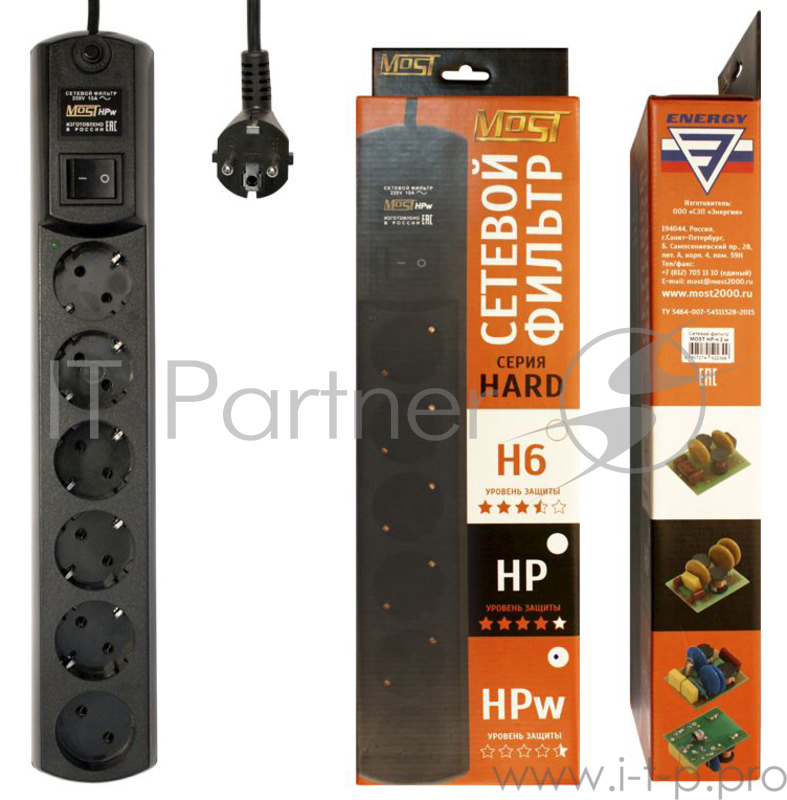 Сетевой фильтр Most HPw 5м (6 розеток) черный (коробка)