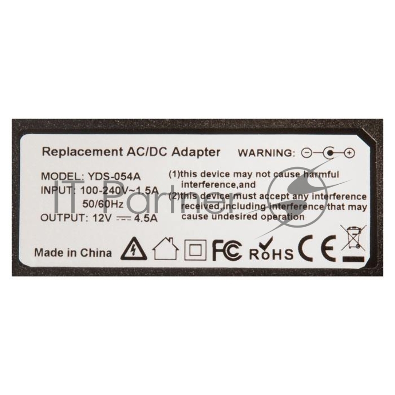 Блок питания для монитора и телевизора LCD 12V 4.5A, 54W, 5.5х2.5