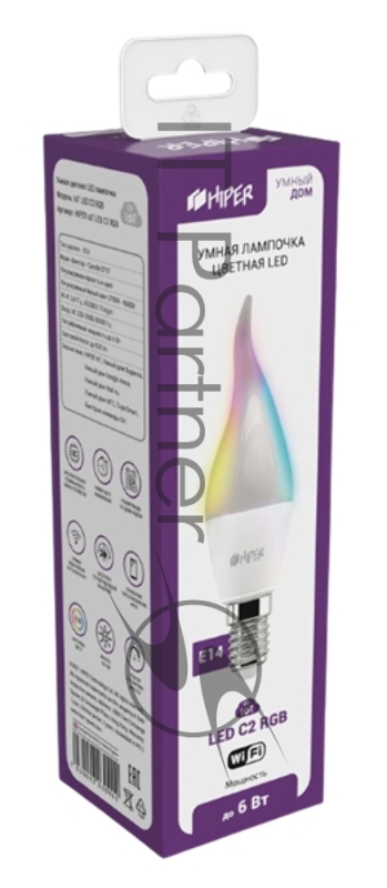 Умная LED лампочка HIPER Smart LED bulb IoT LED C2 RGB//Wi-Fi/Е14/Candle CF37/Регулируемая яркость и цвет/6Вт/2700К-6500К/520 лм/IoT LED C2 RGB