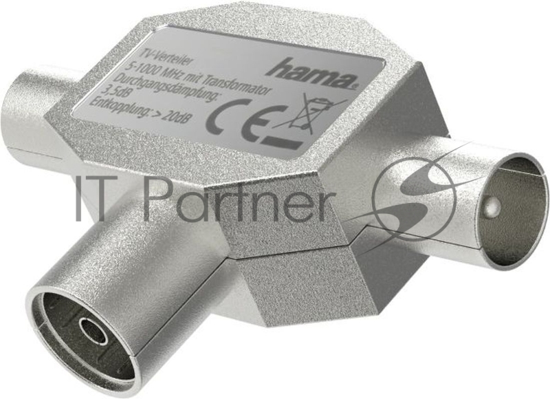 Адаптер антенный Hama H-205236 Coax (f)/2xCoax (f) серебристый (00205236)
