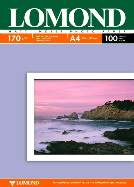 Фотобумага Lomond матовая двусторонняя (0102006), A4, 170 г/м2, 100 л.