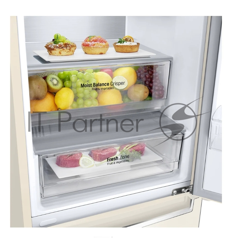 Холодильник LG Electronics 2030x595x68.2, холодильная камера 292 л, морозильная камера 127 л, Total No Frost, инверторный мотор, нижняя морозильная камера, дисплей, бежевый