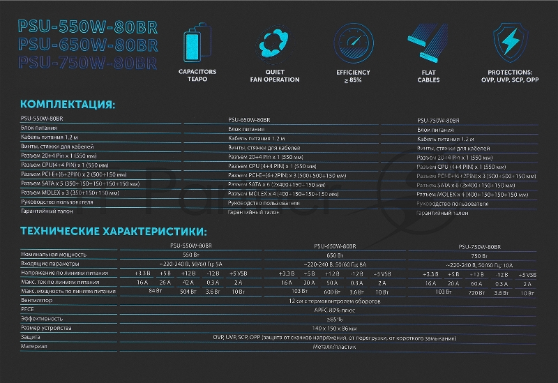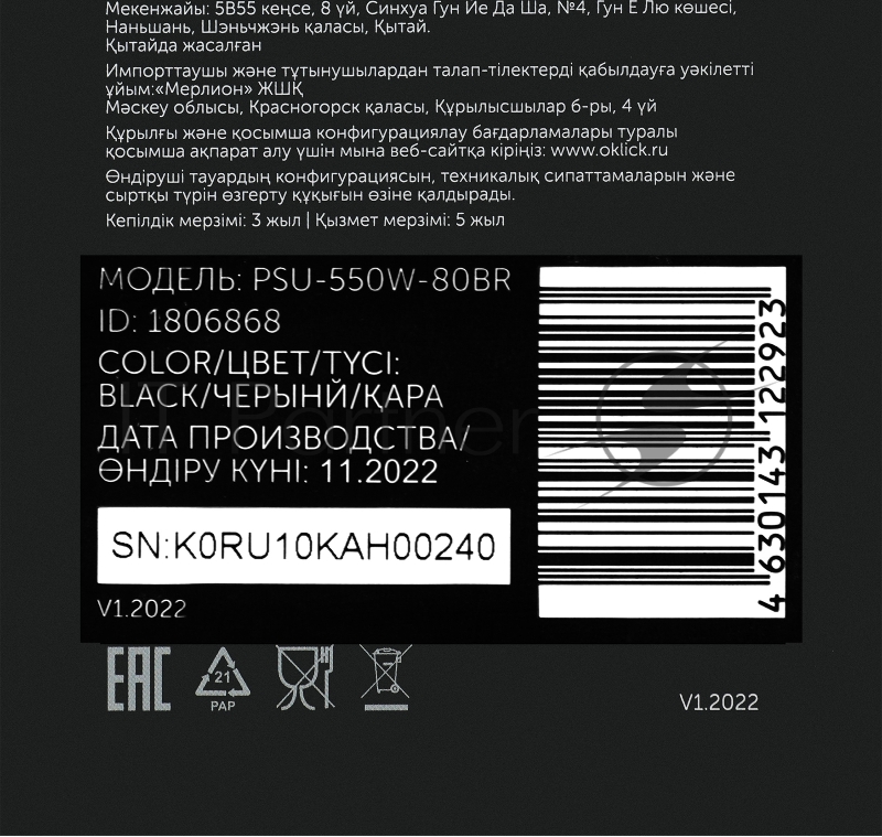 Купить Блок питания Oklick PSU-550W-80BR в Коврове. Забрать в магазине "Ваш Компьютер" г.Ковров пр-т Ленина 20