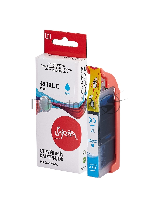 Струйный картридж Sakura 6473B001 (451XL C) для Canon, голубой, 10,2 мл., 665 к.