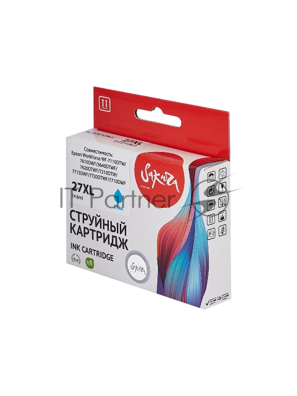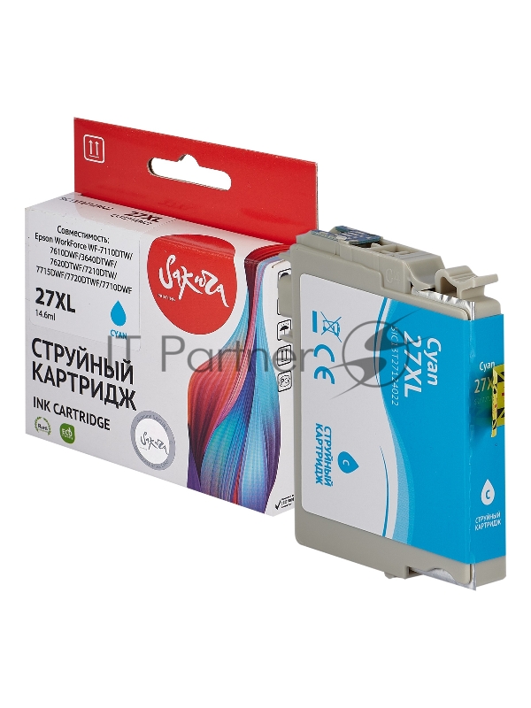 Струйный картридж Sakura C13T27124022 (27XL Cyan) для Epson, голубой, 14,6 мл., 1100 к.