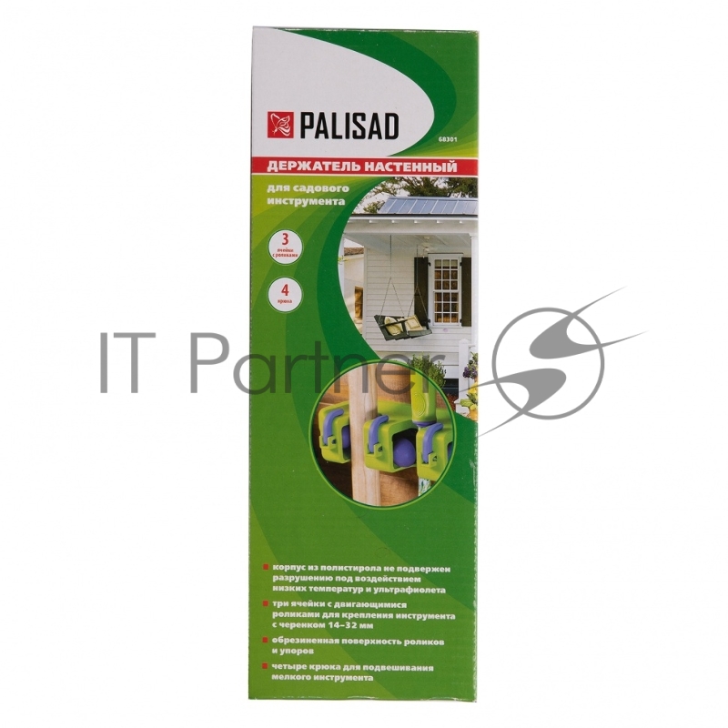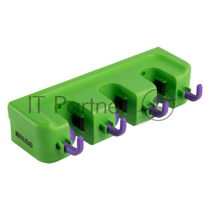 Пластиковый настенный держатель для садово-огородного инструмента, 3 ячейки, 4 крюка// Palisad
