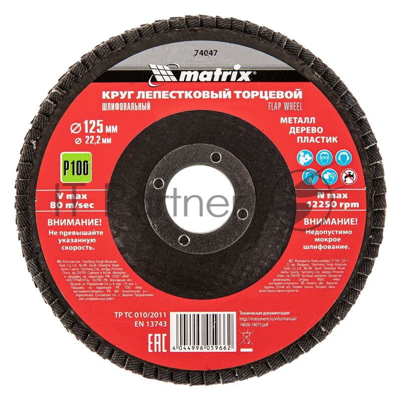 Круг лепестковый торцевой, P 100, 125 х 22,2 мм// Matrix