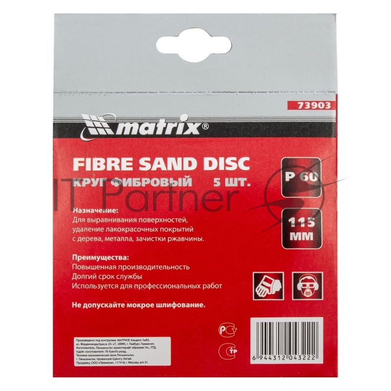 Круг фибровый, Р 60, 115 х 22mm, 5шт.// Matrix