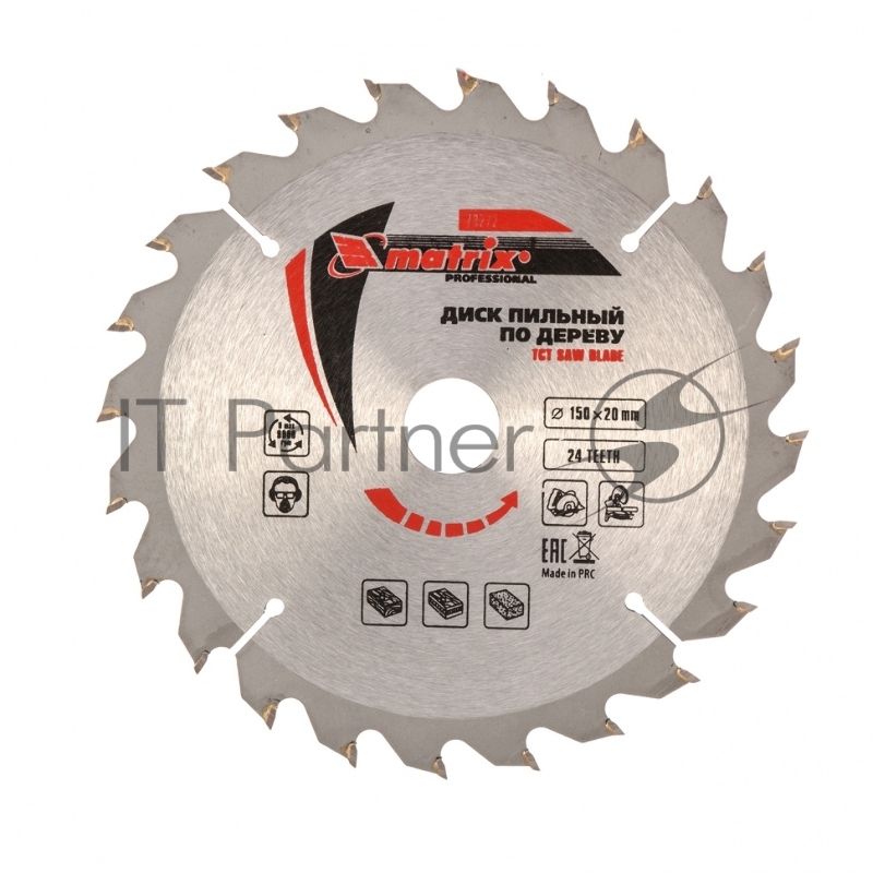 Пильный диск по дереву, ф150 х 20 мм, 24 зуба + кольцо 20/16// Matrix