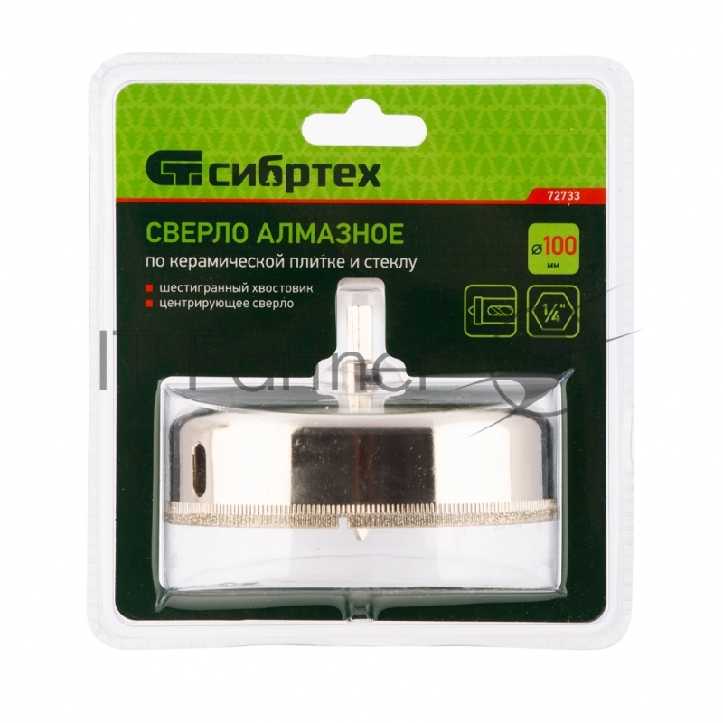 Сверло по керамической плитке и стеклу, 100 х 55 мм, 6 гр.хв-к, с центр. сверлом// Сибртех