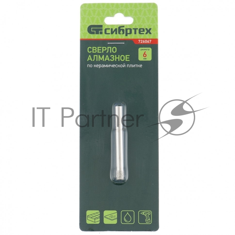 Сверло по стеклу и керамической плитке, 6 х 55 мм, цилиндр. хв// Сибртех