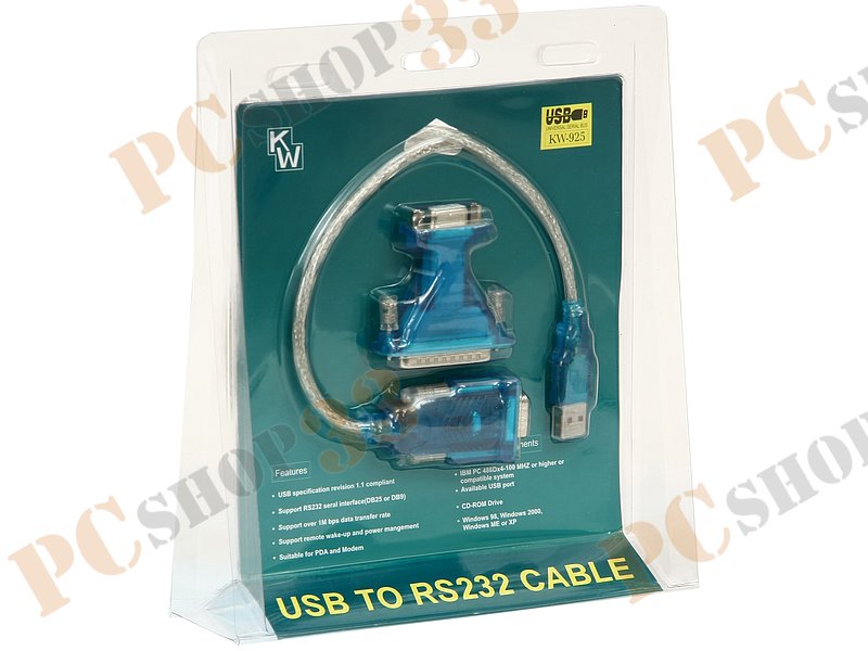 Кабель-переходник USB->COM (9M) + переходник COM (9F)->(25M) KW-925