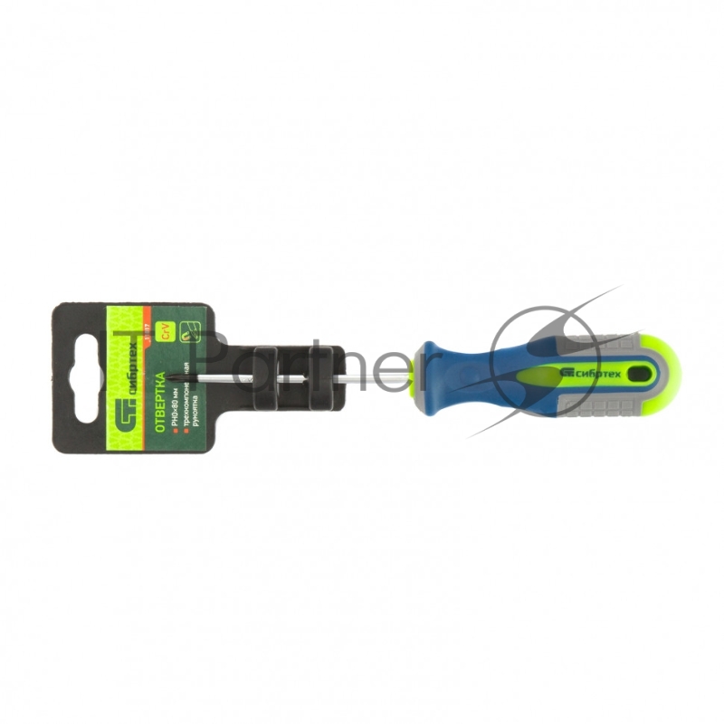 Отвертка, PH0 х 80 мм, CrV, 3-х компонентная рукоятка// Сибртех