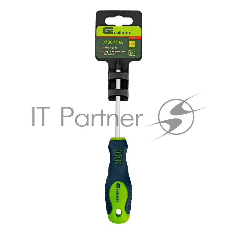 Отвертка, PH1 х 80 мм, CrV, 2-х компонентная рукоятка// Сибртех
