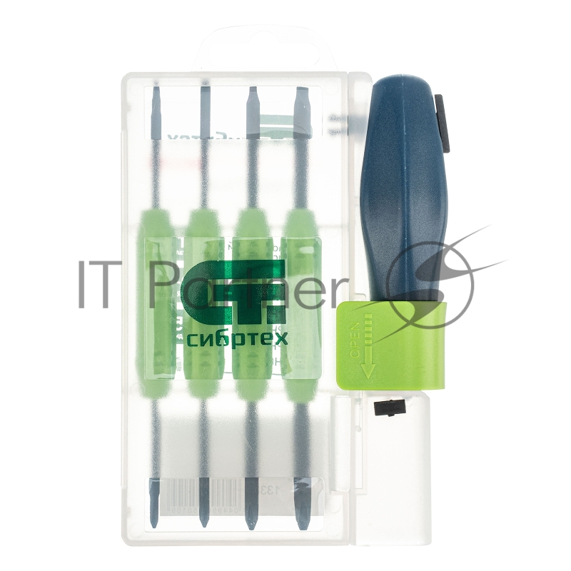 Отвертка со сменными двухсторонними насадками, 8 в 1, CrV, пластиковый кейс// Сибртех
