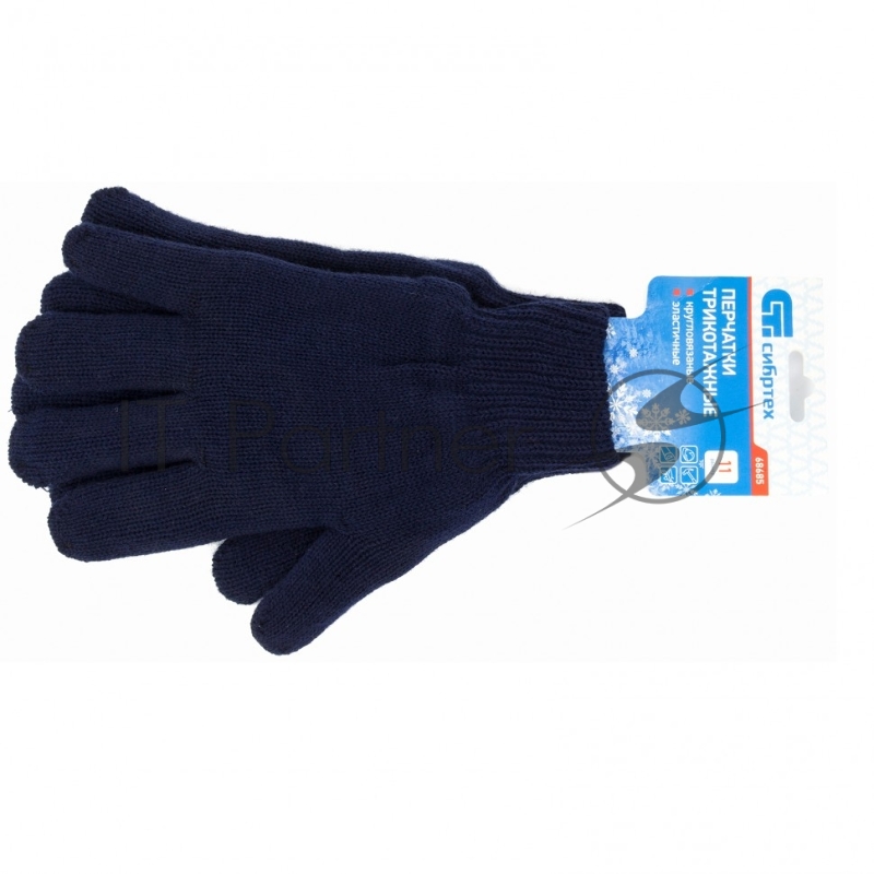 Перчатки трикотажные, акрил, двойные, цвет:синий,двойная манжета, Россия// Сибртех