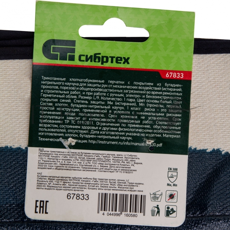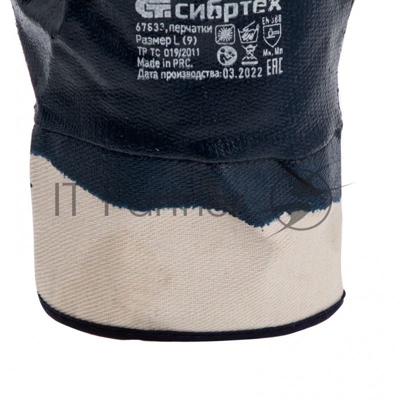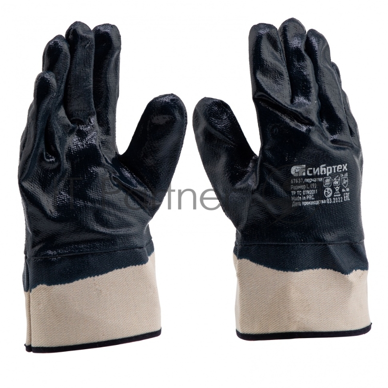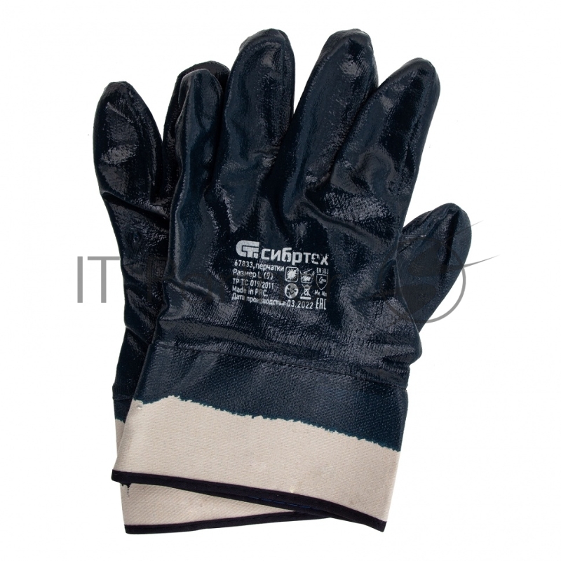 Перчатки трикотажные с обливом из бутадиен-нитрильного каучука, крага, L// Сибртех