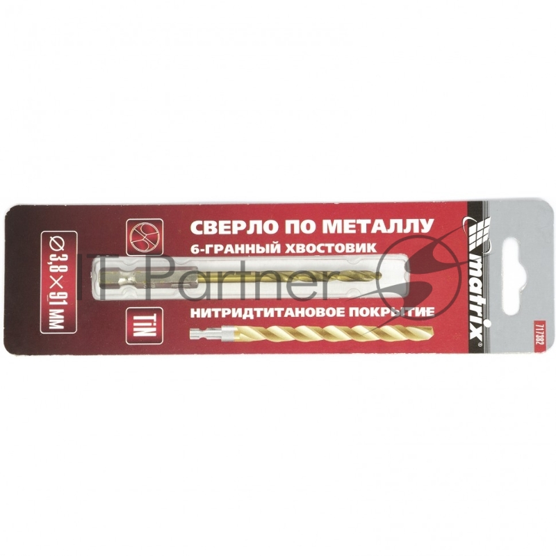 Сверло по металлу, 3,8 мм, HSS, нитридтитановое покрытие, 6-гранный хвостовик// Matrix