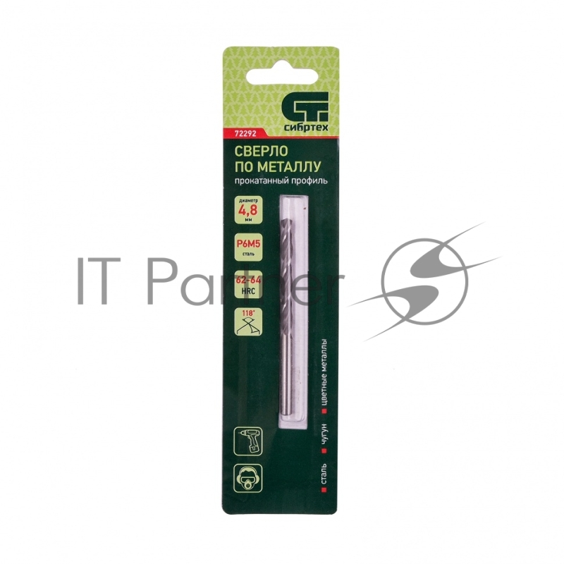 Сверло по металлу, 4,8 мм, Р6М5// Сибртех