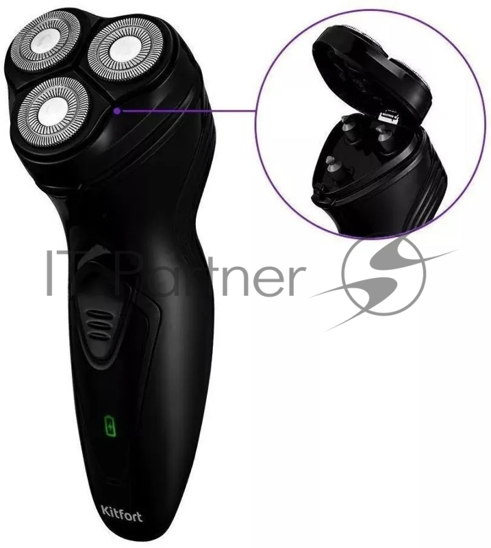 Бритва роторная Kitfort КТ-3116 реж.эл.:3 питан.:аккум. черный