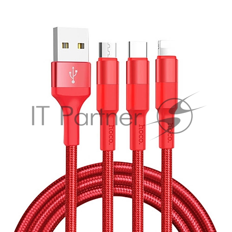 Кабель HOCO USB X26 Xpress 3 в 1 для Lightning, Micro USB, Type-C, 2.0A, 1 м, красный