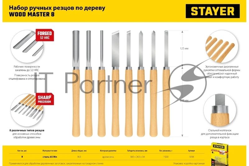 Набор STAYER Wood Master, набор ручных резцов по дереву, 8шт