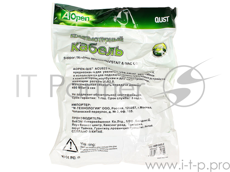 Кабель Aopen/Qust Кабель-адаптер USB2.0-repeater, удлинительный активный Am--Af 20м (ACU823-20M) 6938510851345