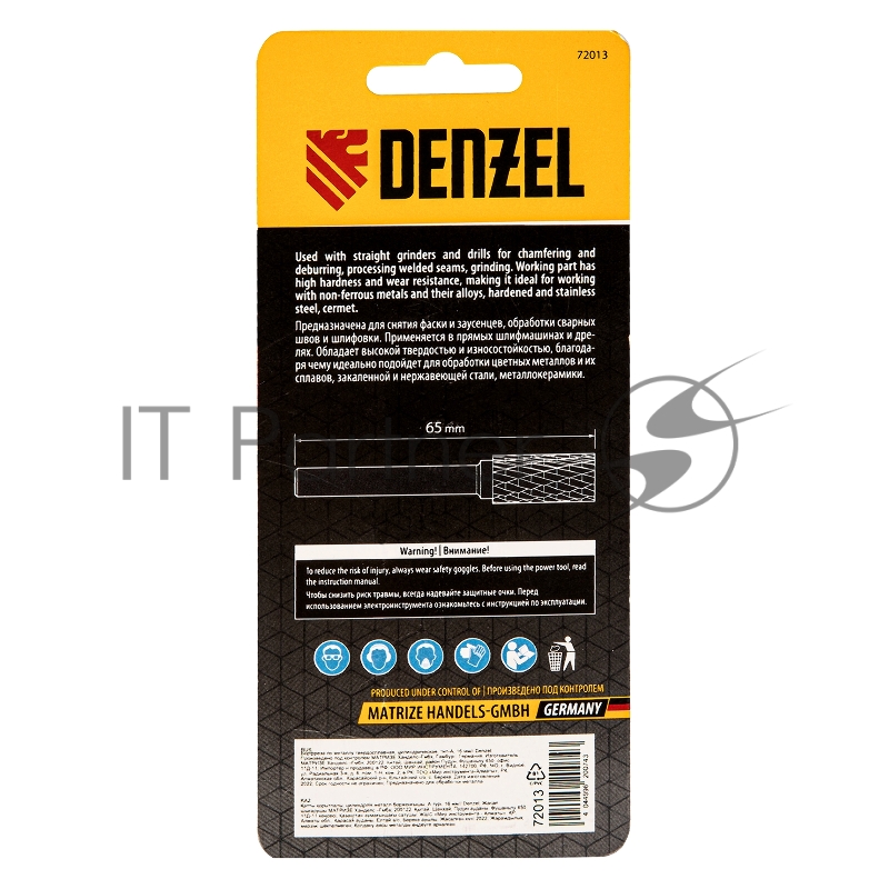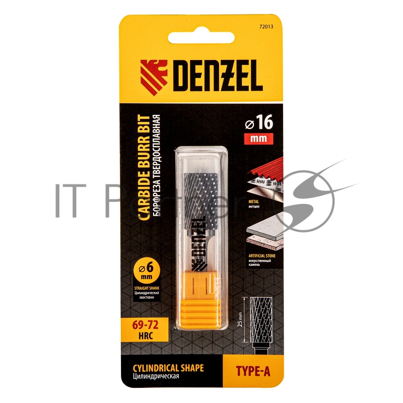 Борфреза по металлу твердосплавная, цилиндрическая, тип-А, 16 мм// Denzel