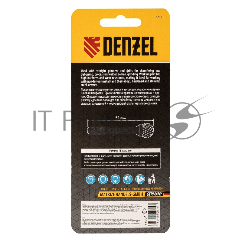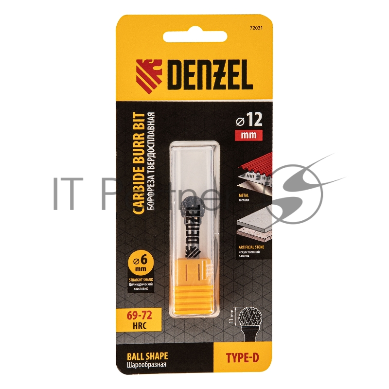 Борфреза по металлу твердосплавная, шарообразная, тип-D, 12 мм// Denzel