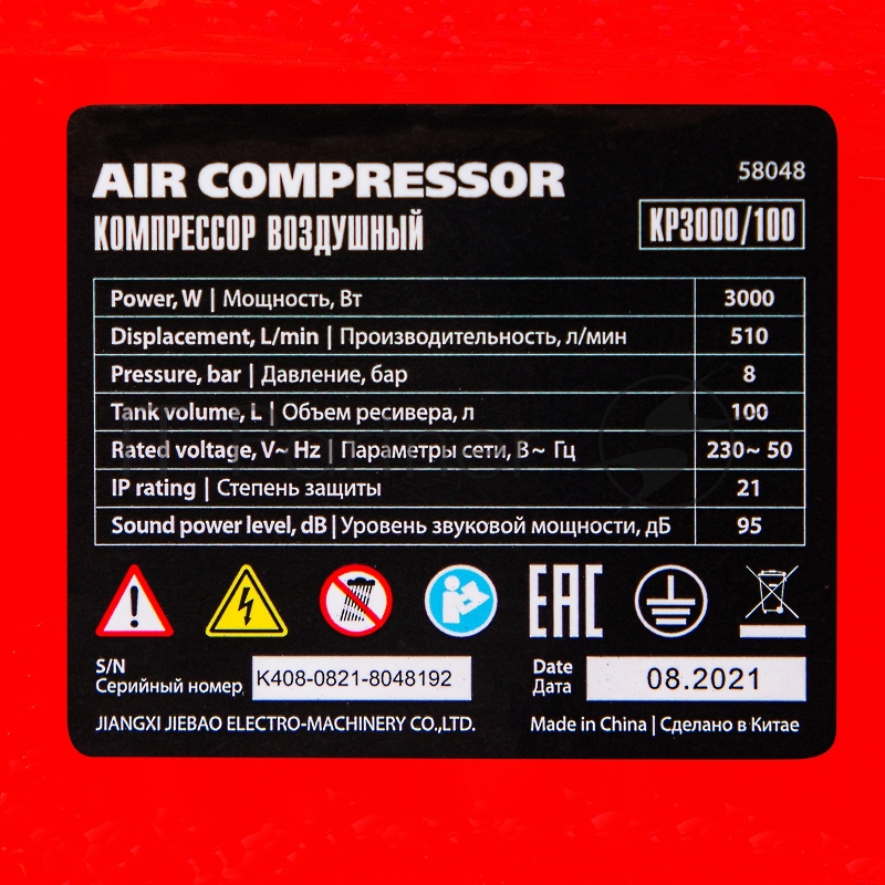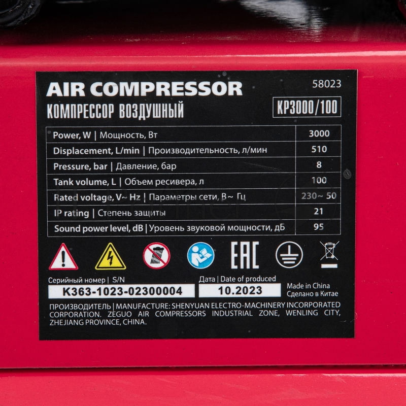 Компрессор воздушный рем. привод КР3000/100 3,0 кВт, 100 литров, 510 л/мин// МТХ