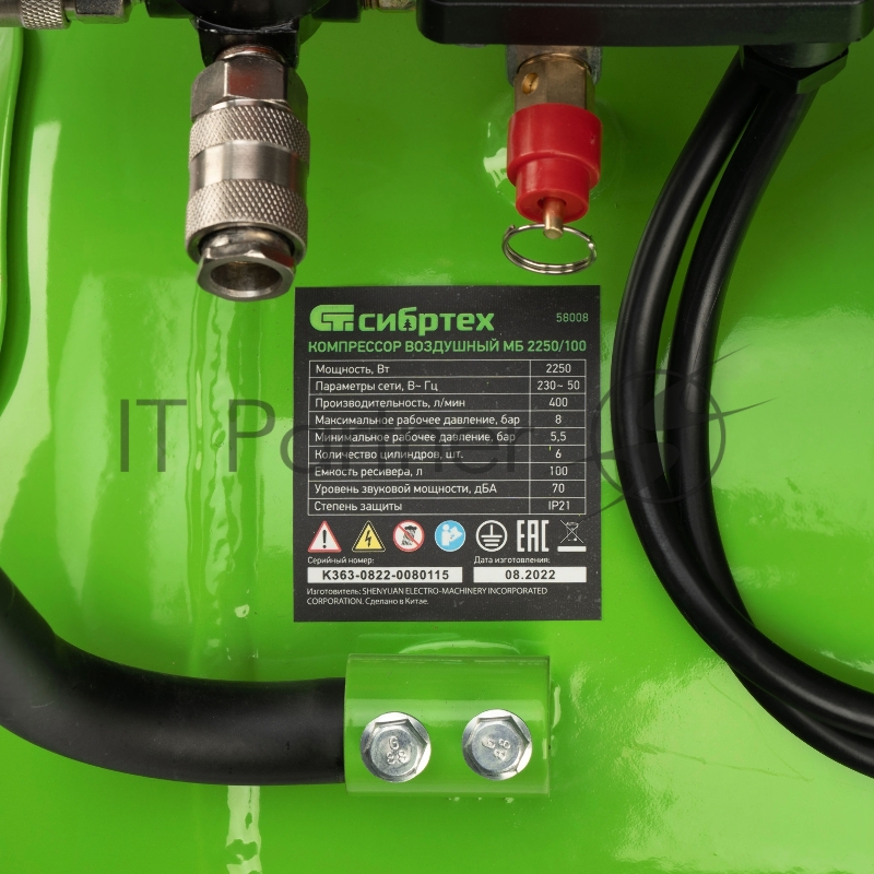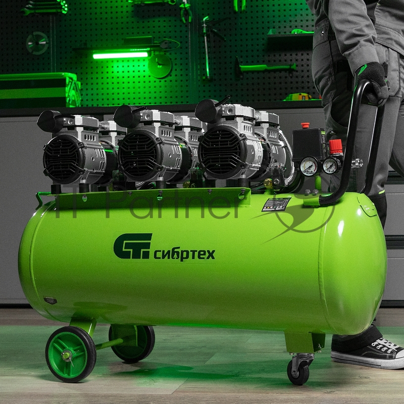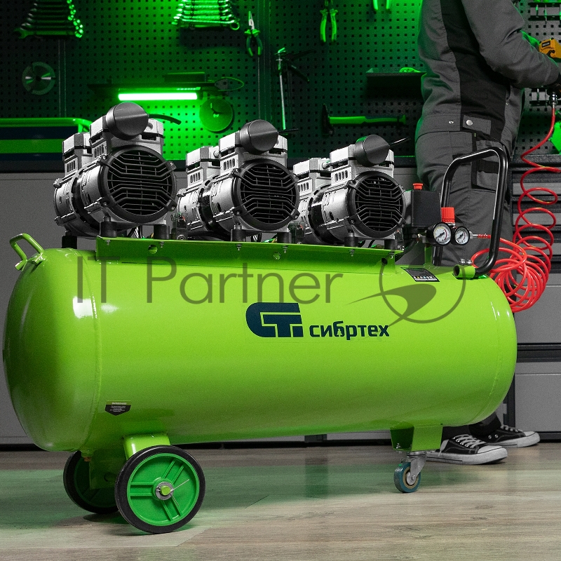 Компрессор безмаслянный малошумный МБ 2250/100, 2250 Вт, 100л, 400 л/мин// Сибртех
