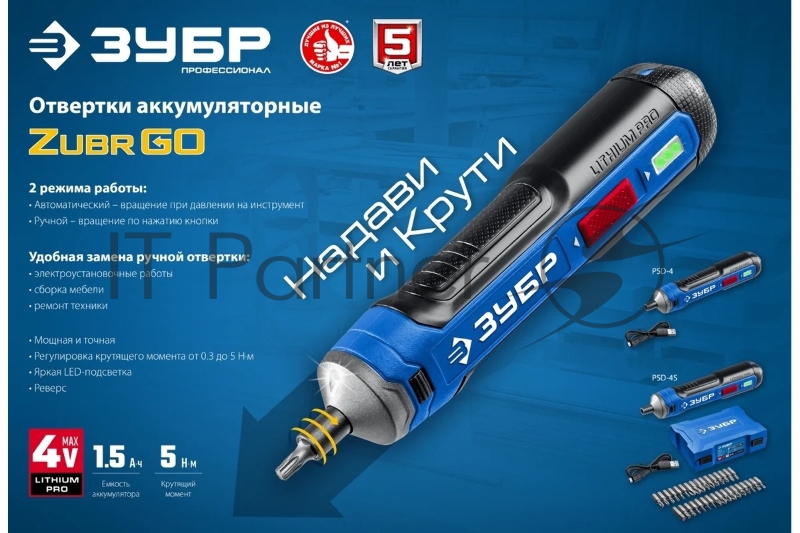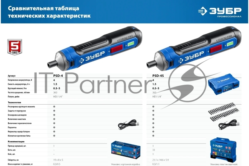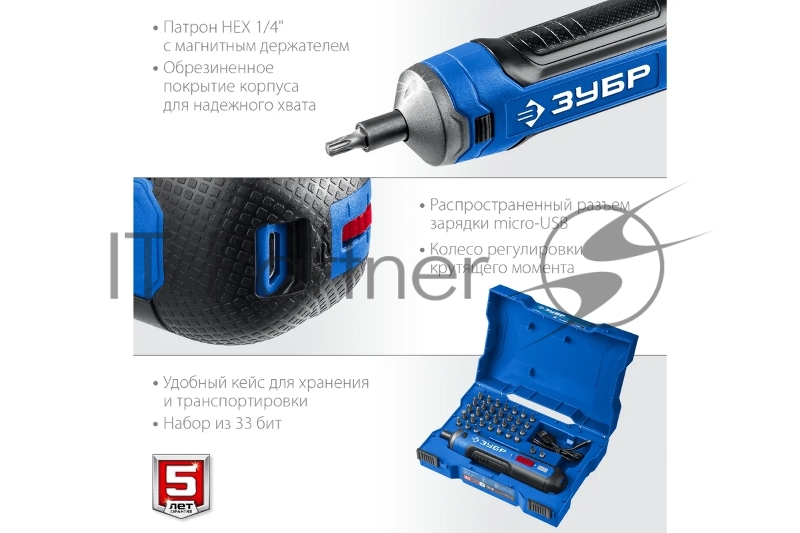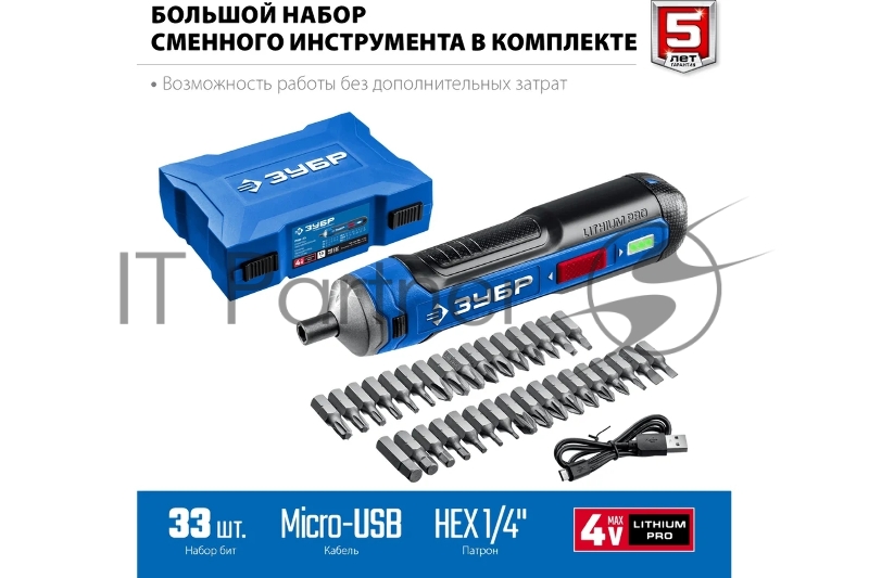 Отвертка аккумуляторная 4 Vmax, в кейсе с набором 33 бит ЗУБР Профессионал PSD-4S